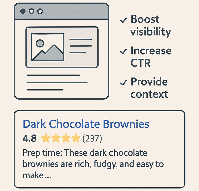 Ever notice how some search results show product prices, star ratings, or FAQs underneath the link? That’s the power of rich snippets, and they can significantly boost your click-through rate (CTR).